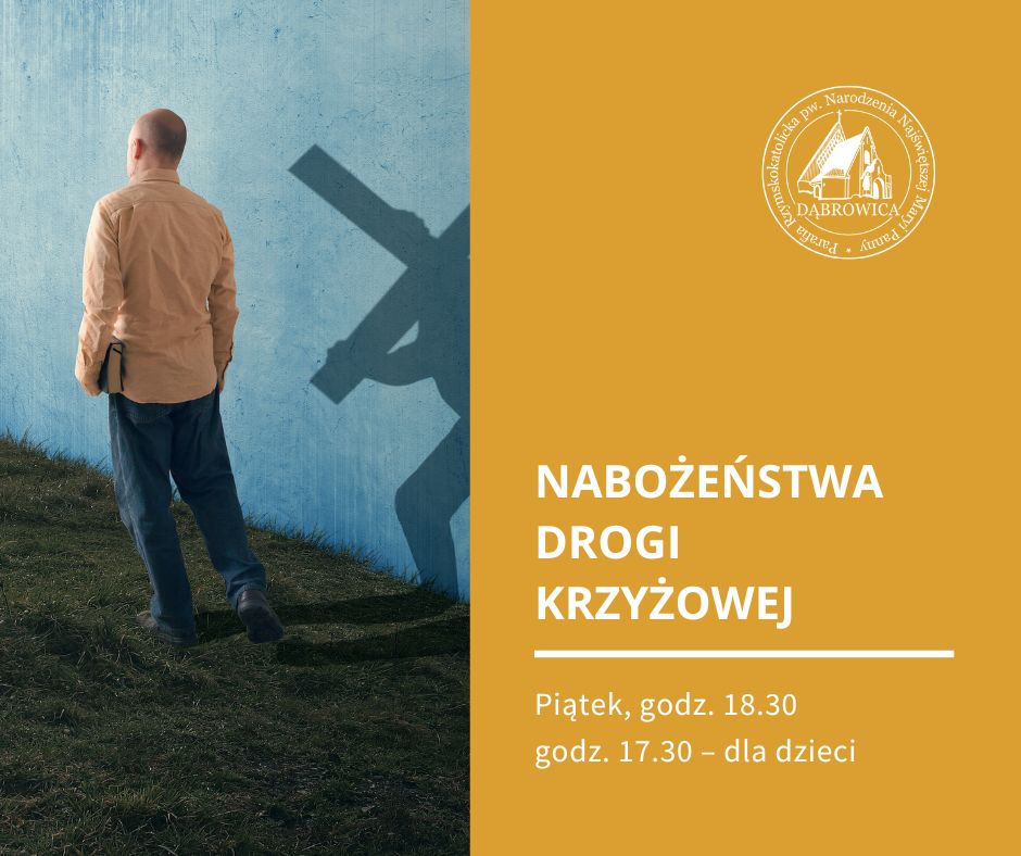 W każdy piątek Wielkiego Postu zapraszam na nabożeństwa Drogi Krzyżowej: o godz. 17.30 – dzieci, a o godz. 18.30 – młodzież i dorosłych.